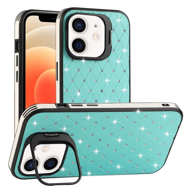 For iPhone 12 Starry Bling Diamonds Lens Holder Phone Case(Green)