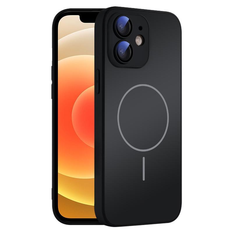 For iPhone 12 Thin Circle MagSafe Skin-feel AG Glass Phone Case(Black)