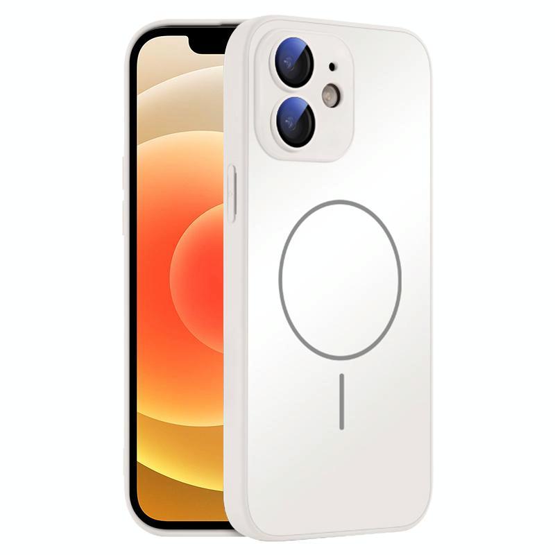 For iPhone 12 Thin Circle MagSafe Skin-feel AG Glass Phone Case(White)
