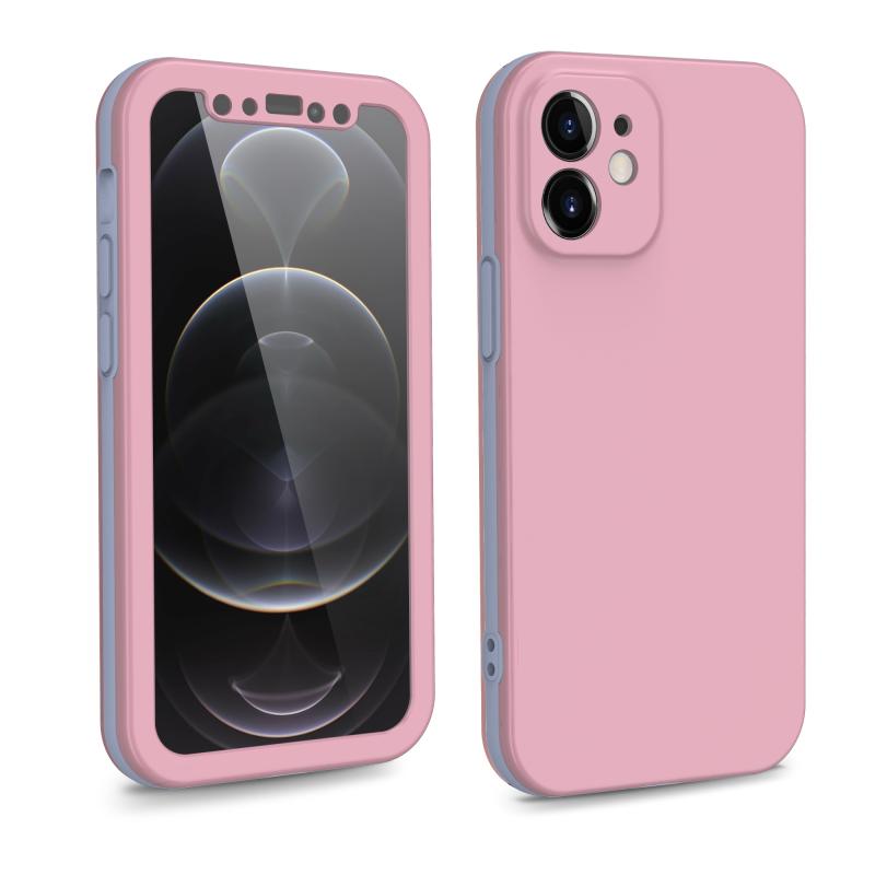 For iPhone 12 Two Color Full Protective 3-in-1 Phone Case(Pink)