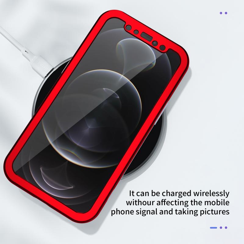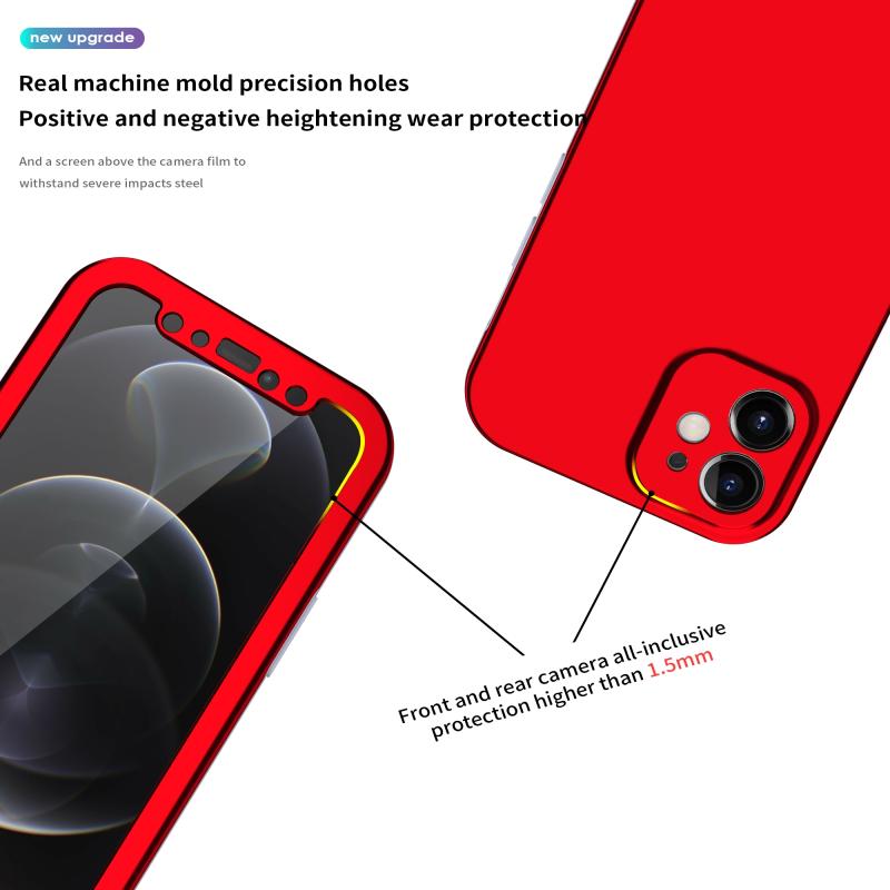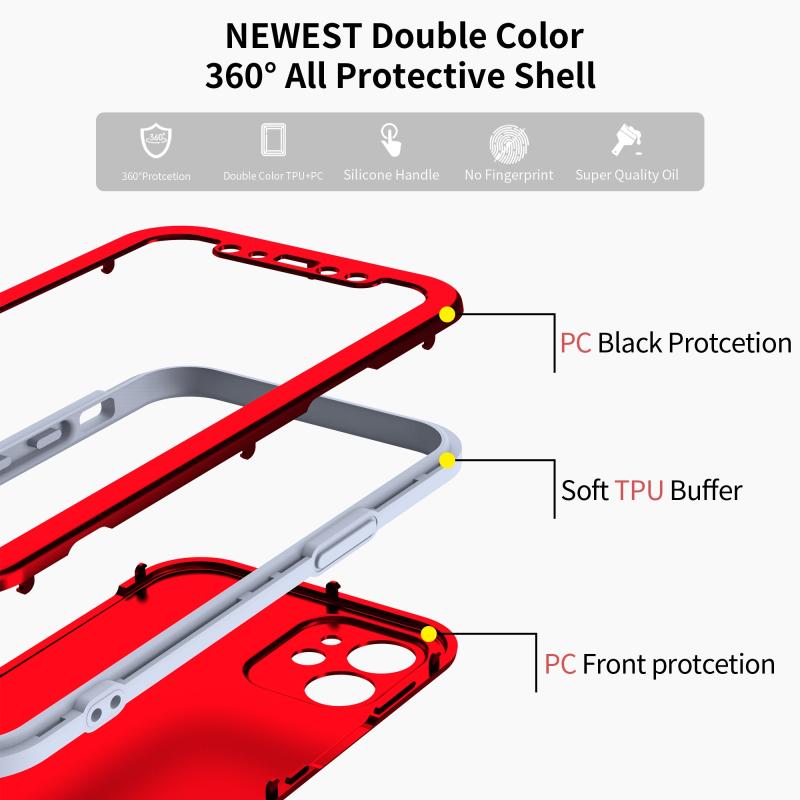 For iPhone 12 Two Color Full Protective 3-in-1 Phone Case(Red)