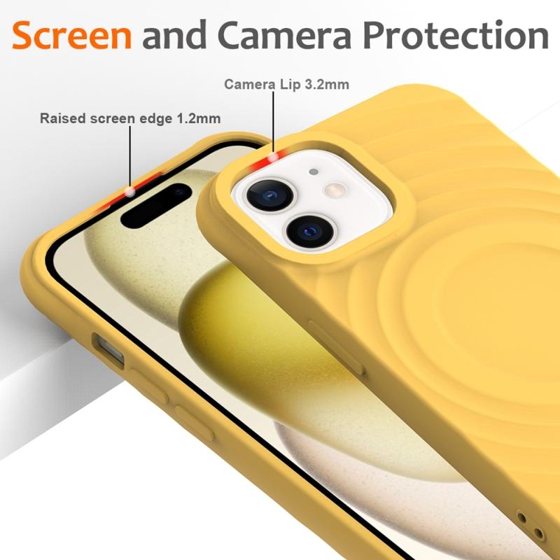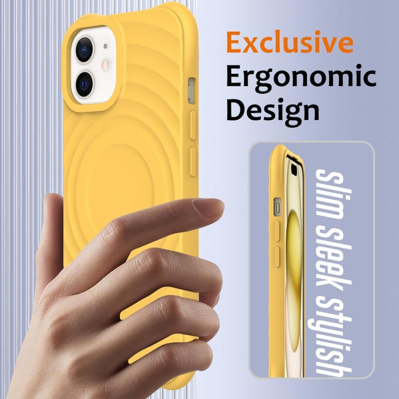 For iPhone 12 Wave Texture MagSafe Magnetic Liquid Silicone Phone Case(Yellow)