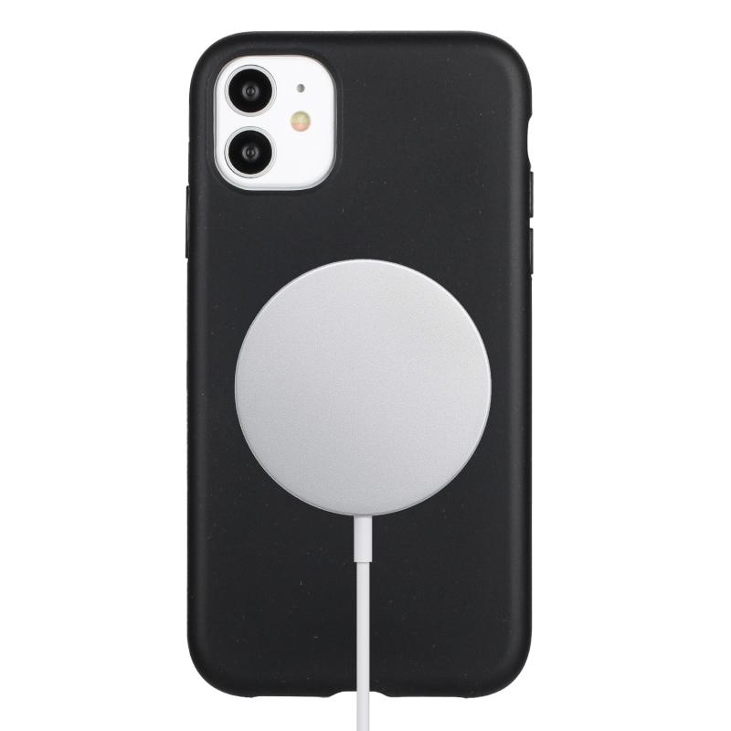 For iPhone 12 Wheat MagSafe Magnetic Straw Material + TPU Phone Case(Black)