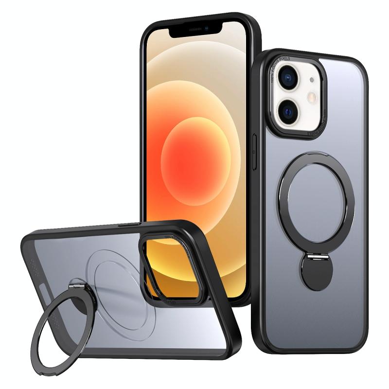 For iPhone 12 Wing Series Gen2 MagSafe Metal Ring Holder Phone Case(Black)