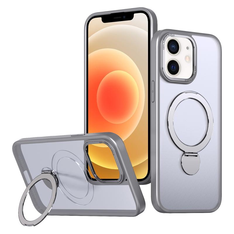 For iPhone 12 Wing Series Gen2 MagSafe Metal Ring Holder Phone Case(Titanium Gray)