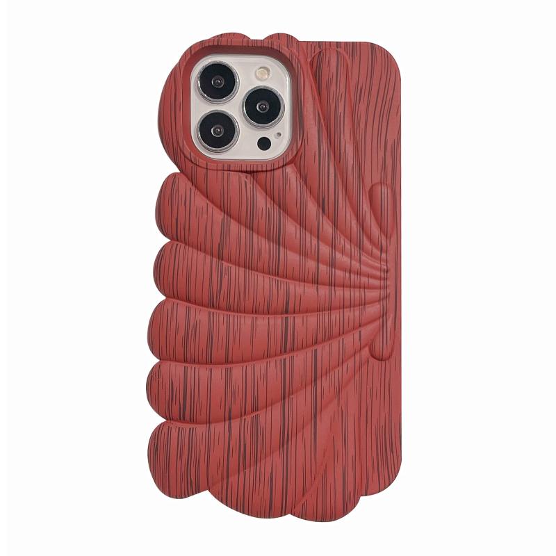 For iPhone 12 Wood Grain Shell Shape TPU Phone Case(Red)