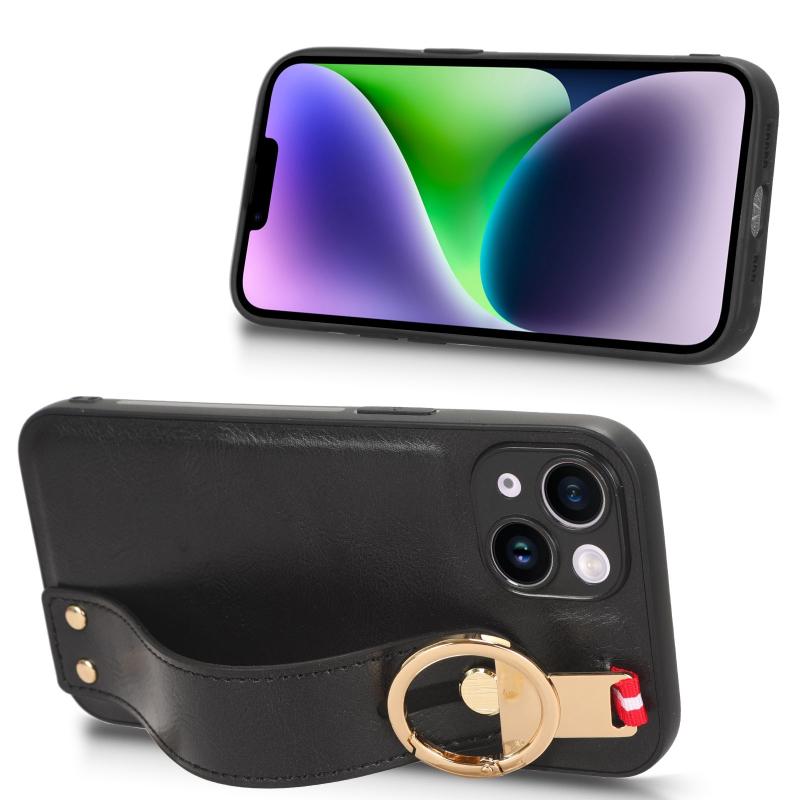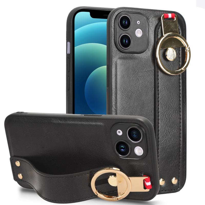 For iPhone 12 Wristband Leather Back Phone Case(Black)
