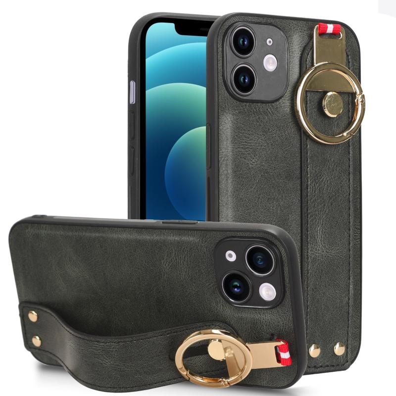 For iPhone 12 Wristband Leather Back Phone Case(Green)