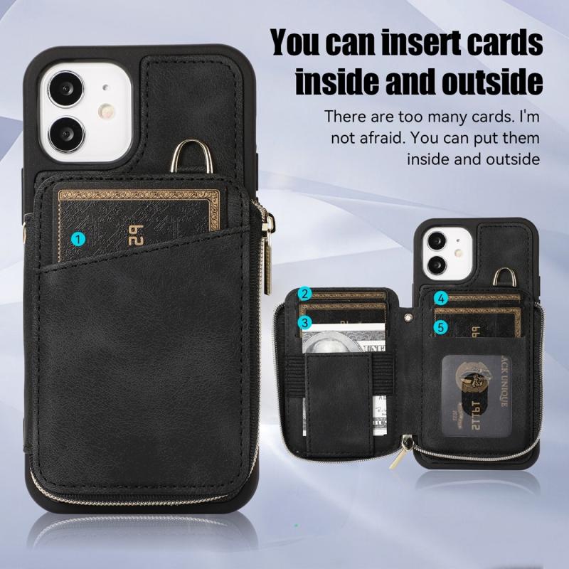 For iPhone 12 Zipper Card Bag Back Cover Phone Case(Black)