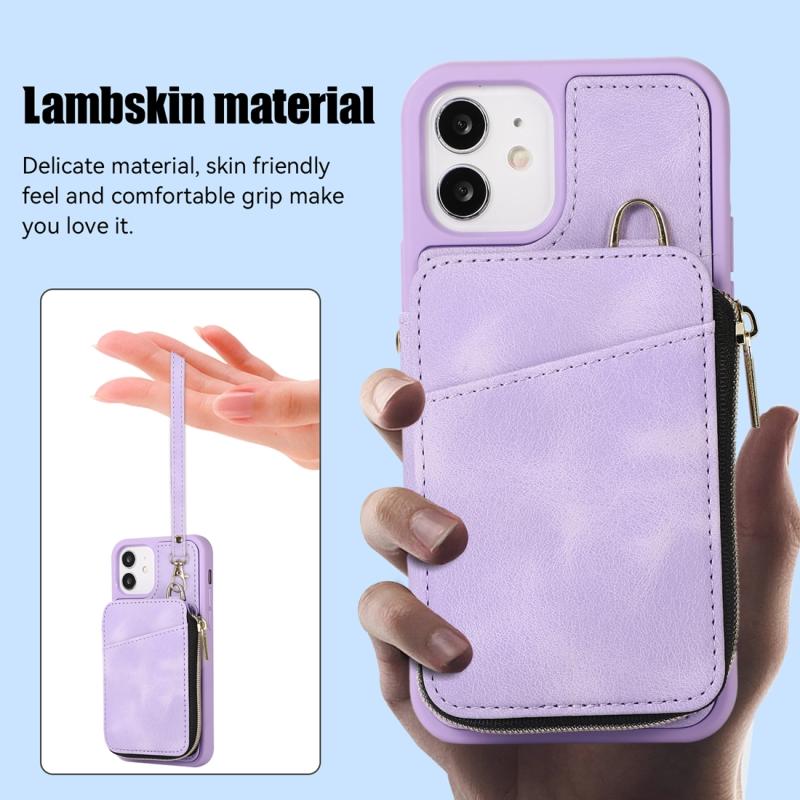 For iPhone 12 Zipper Card Bag Back Cover Phone Case(Purple)