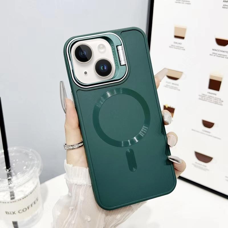 For iPhone 13 / 14 CD Texture Frosted MagSafe Lens Holder Phone Case(Green)
