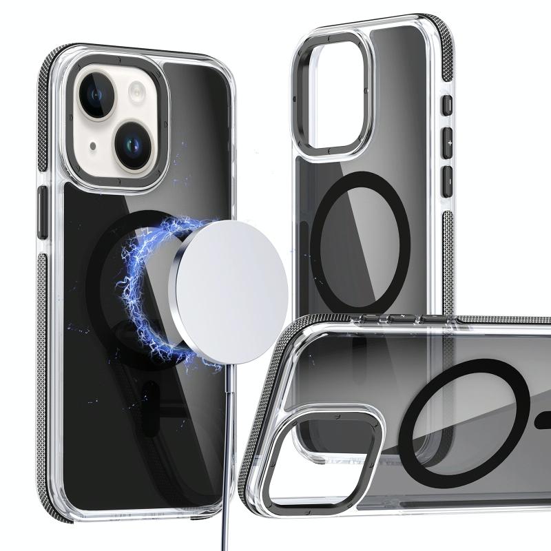 For iPhone 13 / 14 Magsafe Dual-Color Transparent Black Full Coverage Phone Case(Black)