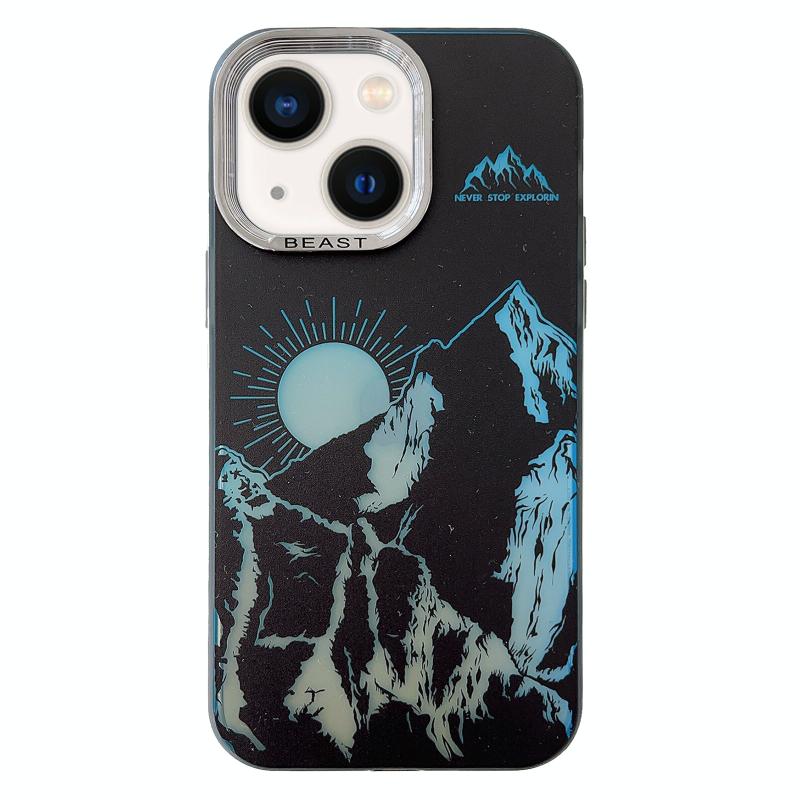 For iPhone 13 2 in 1 Aurora Electroplating Frame Phone Case(Sunrise Black)