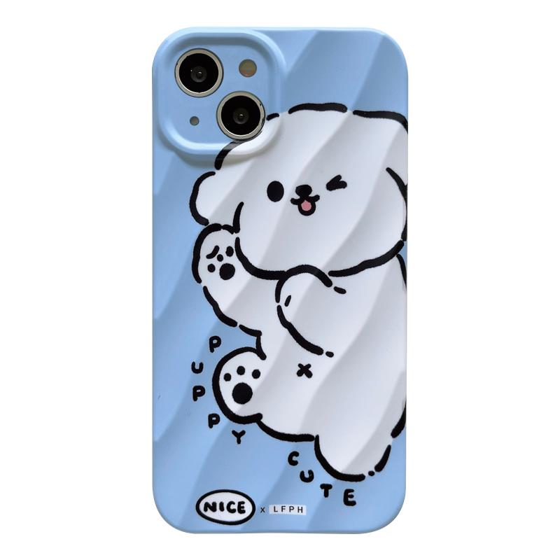For iPhone 13 2 in 1 Minimalist Pattem PC Shockproof Phone Case(Cute Puppy)