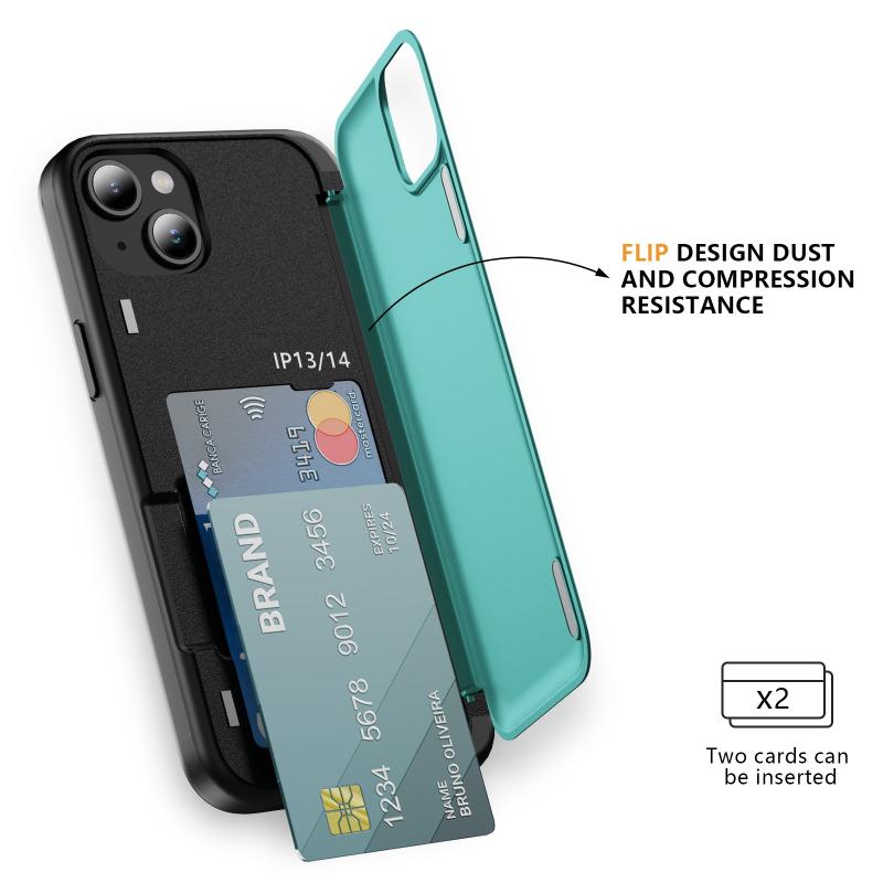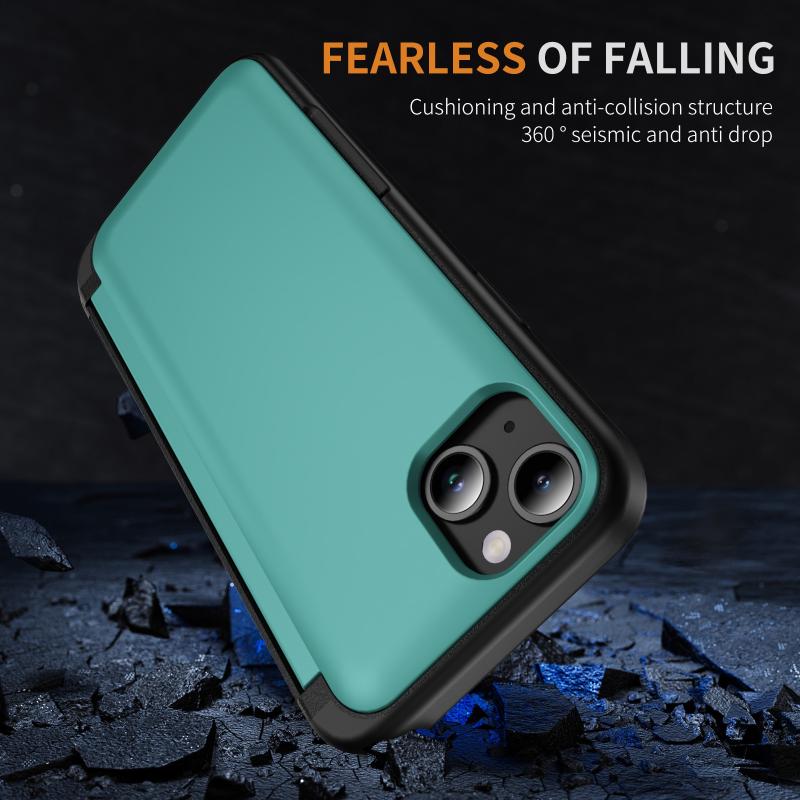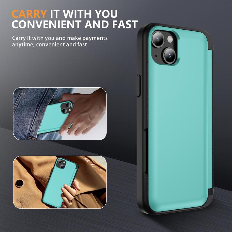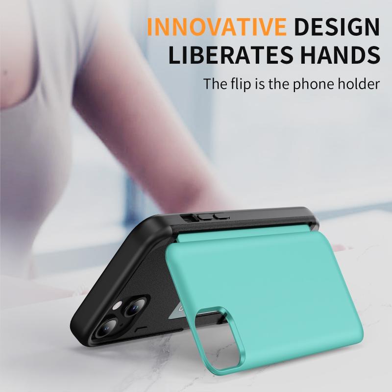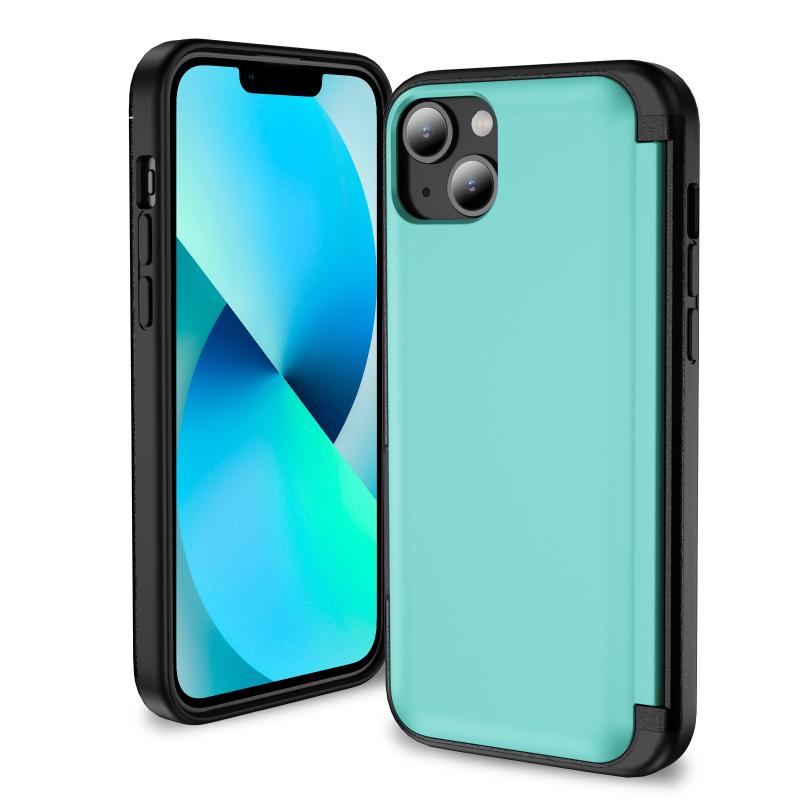 For iPhone 13 3 in 1 Flip Holder Phone Case(Cyan)