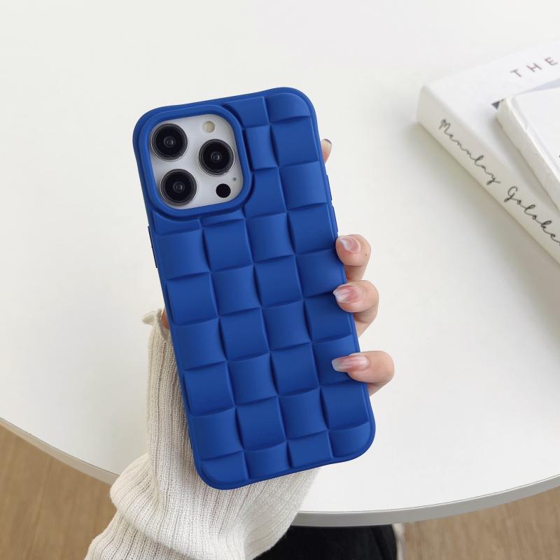 For iPhone 13 3D Cube Weave Texture Skin Feel Phone Case(Dark Blue)