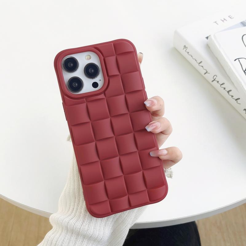 For iPhone 13 3D Cube Weave Texture Skin Feel Phone Case(Wine Red)