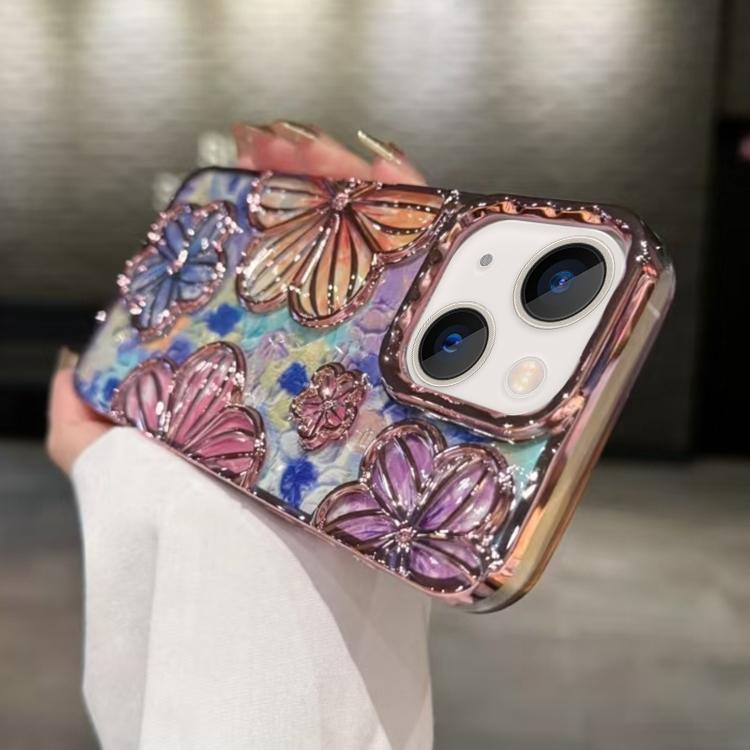 For iPhone 13 3D Flower Electroplated TPU Phone Case(Pink)