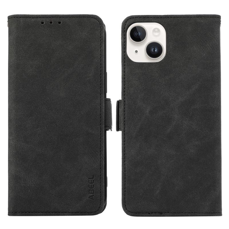 For iPhone 13 ABEEL Frosted Magnetic RFID Leather Phone Case(Black)