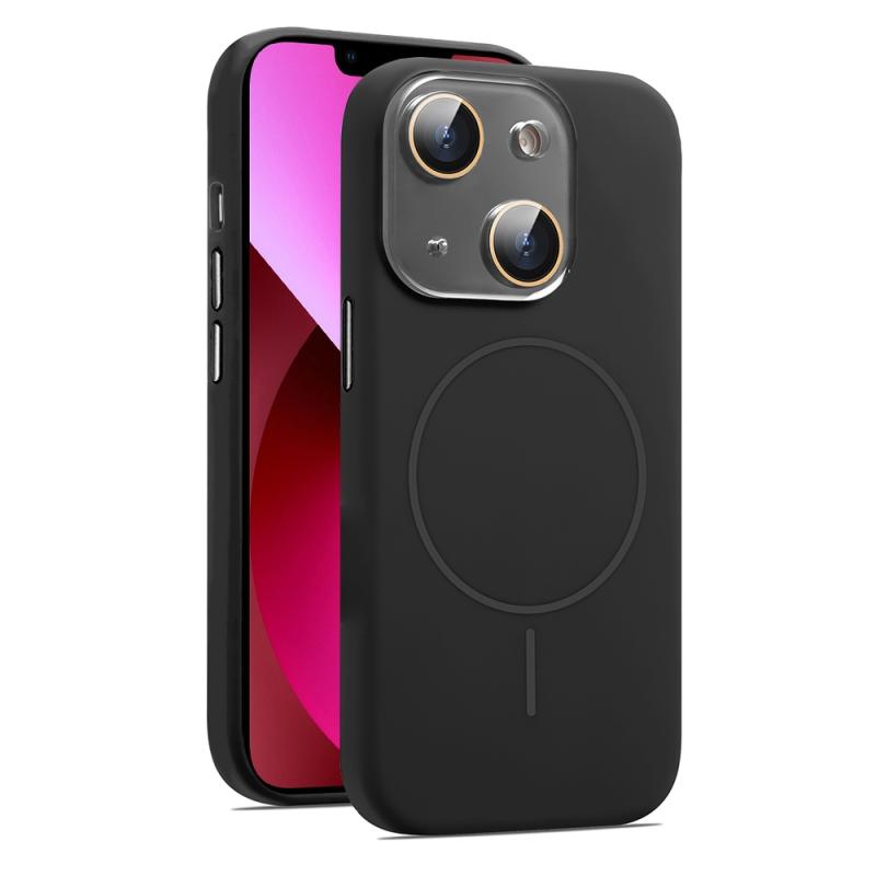 For iPhone 13 AG Fine Hole Liquid Silicone MagSafe Magnetic Phone Case(Black)
