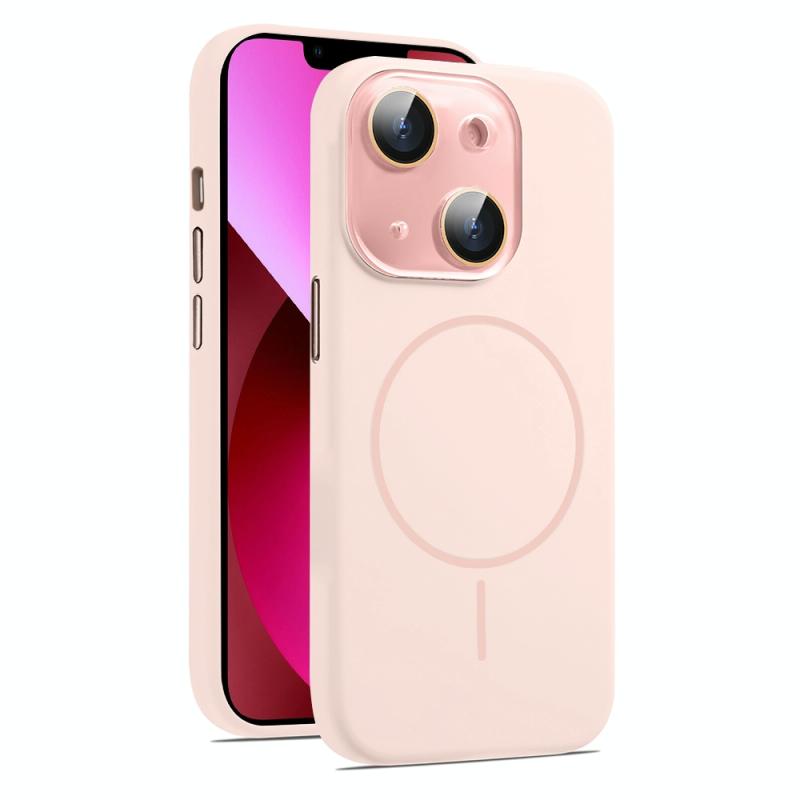 For iPhone 13 AG Fine Hole Liquid Silicone MagSafe Magnetic Phone Case(Pink)