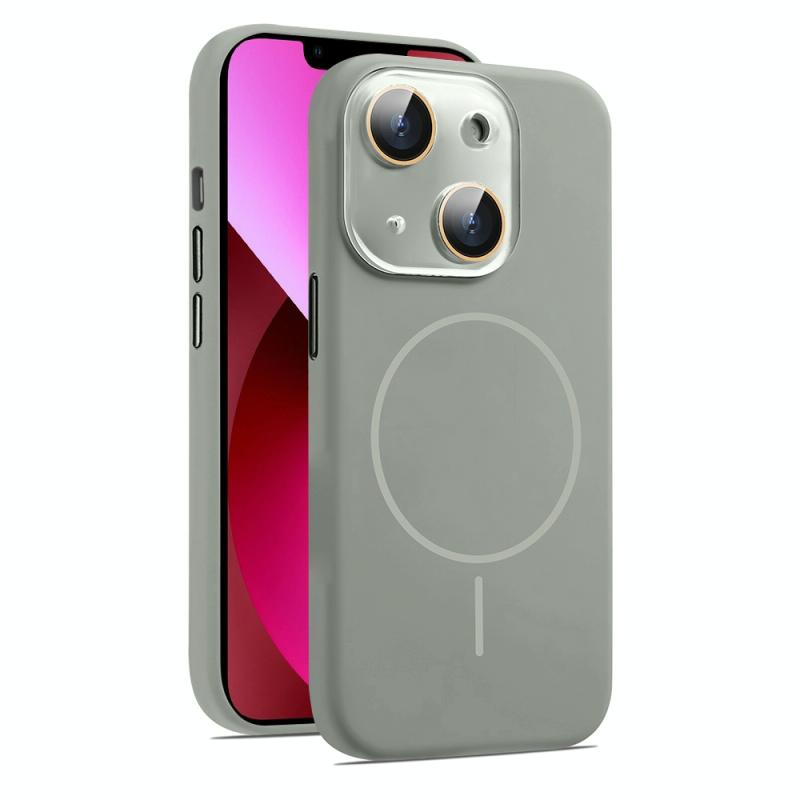For iPhone 13 AG Fine Hole Liquid Silicone MagSafe Magnetic Phone Case(Titanium Gray)