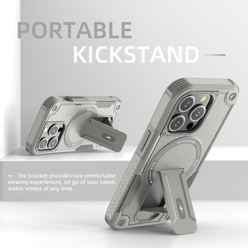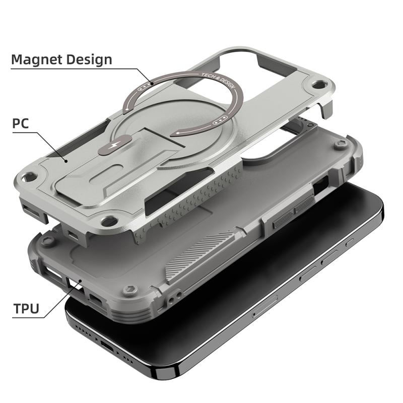For iPhone 13 Armor Magsafe Holder PC Hybrid TPU Phone Case(Grey)