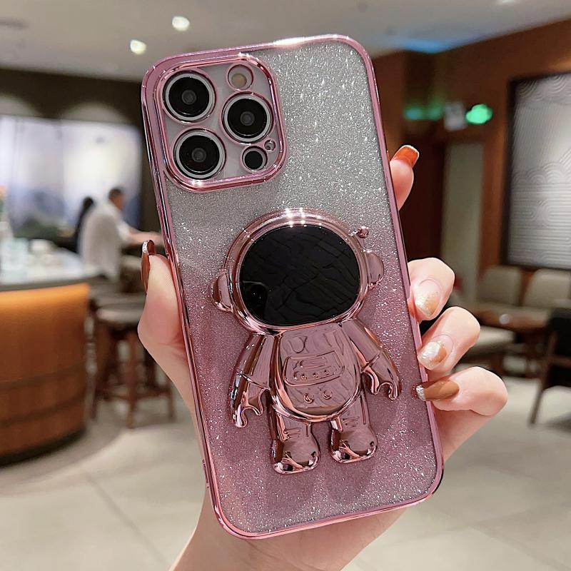 For iPhone 13 Astronaut Holder Gradient Glitter Powder Phone Case(Pink)