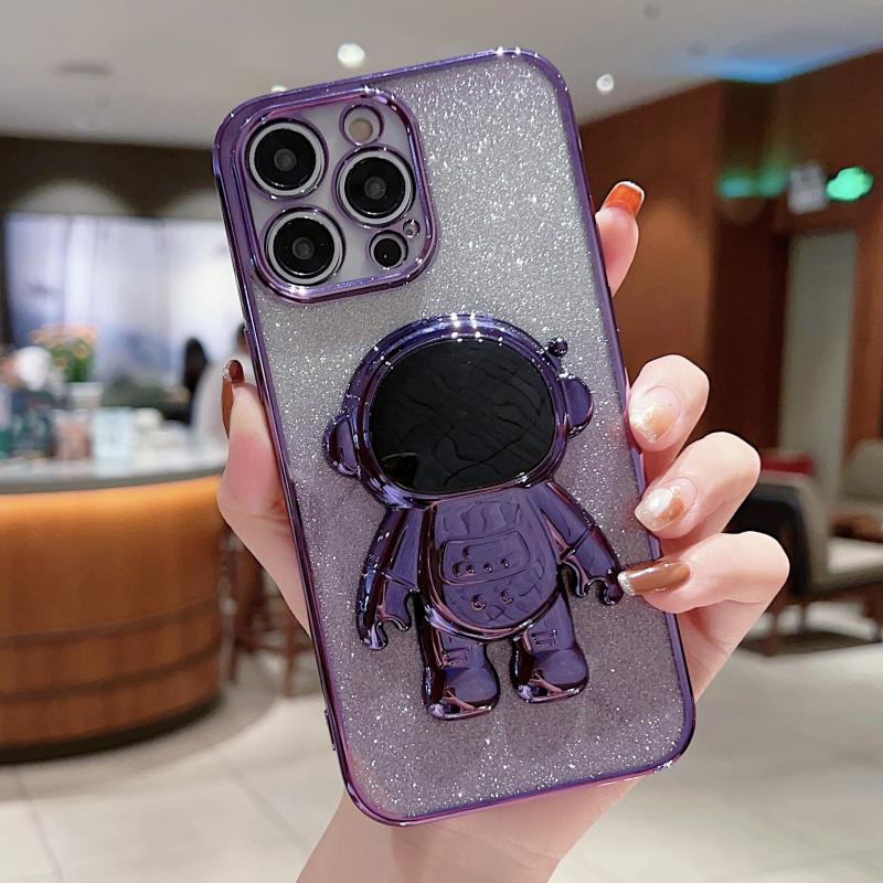 For iPhone 13 Astronaut Holder Gradient Glitter Powder Phone Case(Purple)