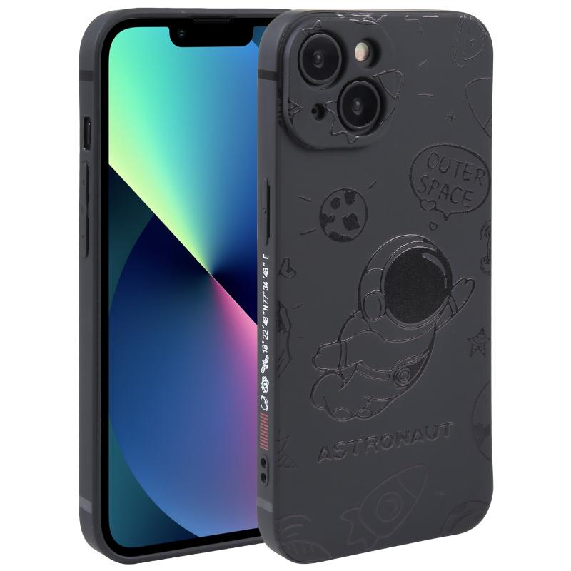 For iPhone 13 Astronaut Pattern Silicone Straight Edge Phone Case(Flying Astronaut-Black)