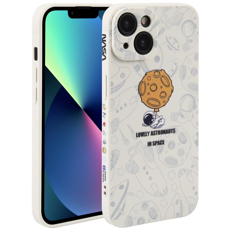 For iPhone 13 Astronaut Pattern Silicone Straight Edge Phone Case(Lovely Astronaut-White)