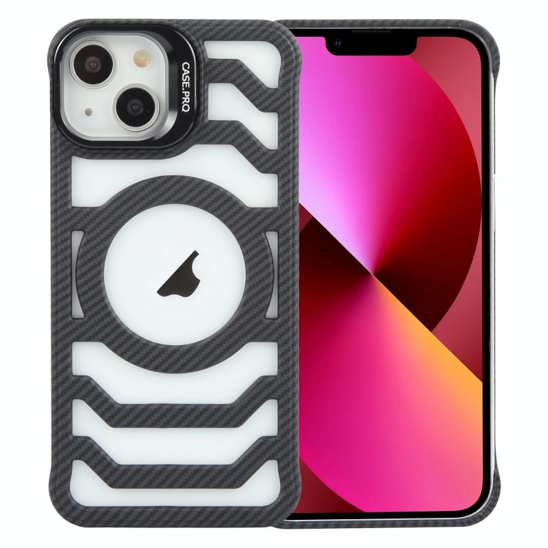 For iPhone 13 Borderless Carbon Fiber Lens Protection Bracket MagSafe Phone Case(Black)