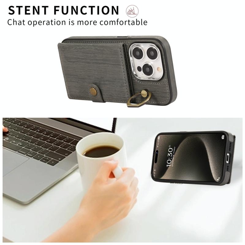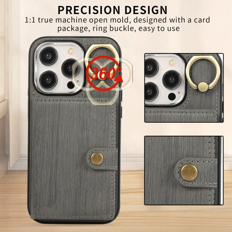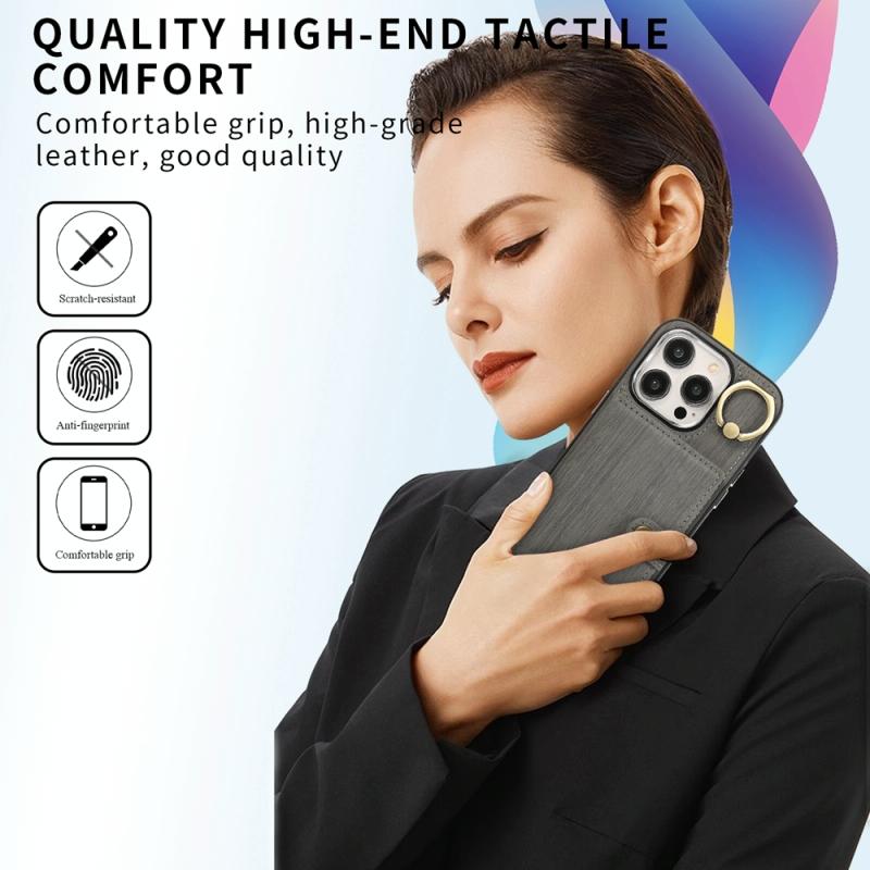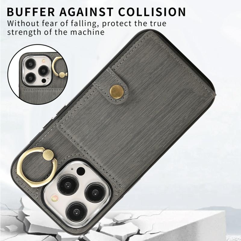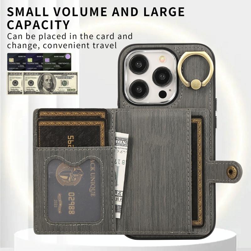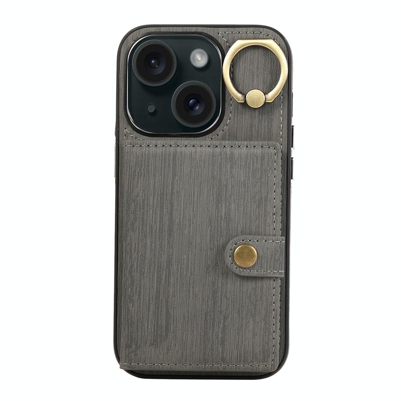 For iPhone 13 Brushed Texture Wallet Ring Holder Phone Case(Grey)