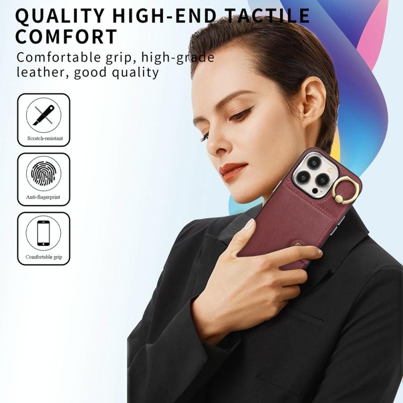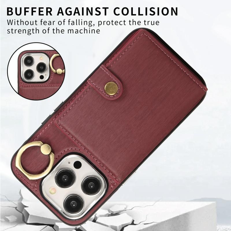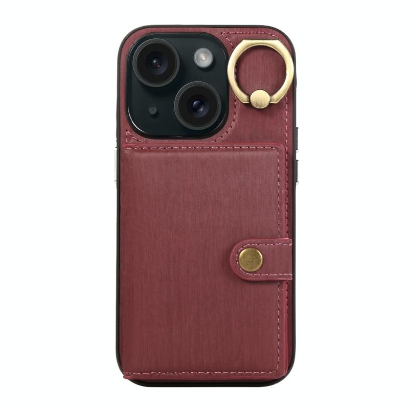 For iPhone 13 Brushed Texture Wallet Ring Holder Phone Case(Wine Red)