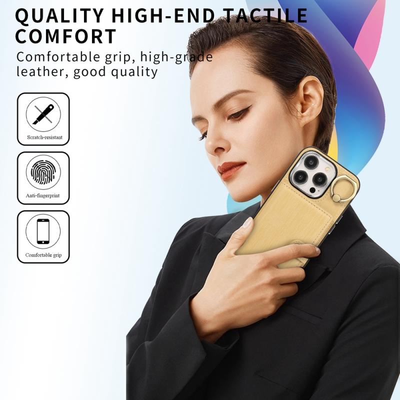 For iPhone 13 Brushed Texture Wallet Ring Holder Phone Case(Yellow)