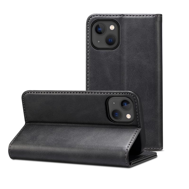 For iPhone 13 Calf Texture Horizontal Flip Leather Case with Holder & Card Slots & Wallet(Black)