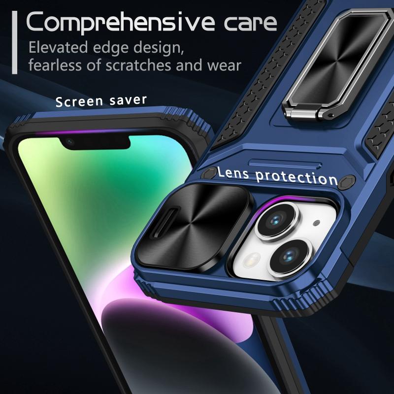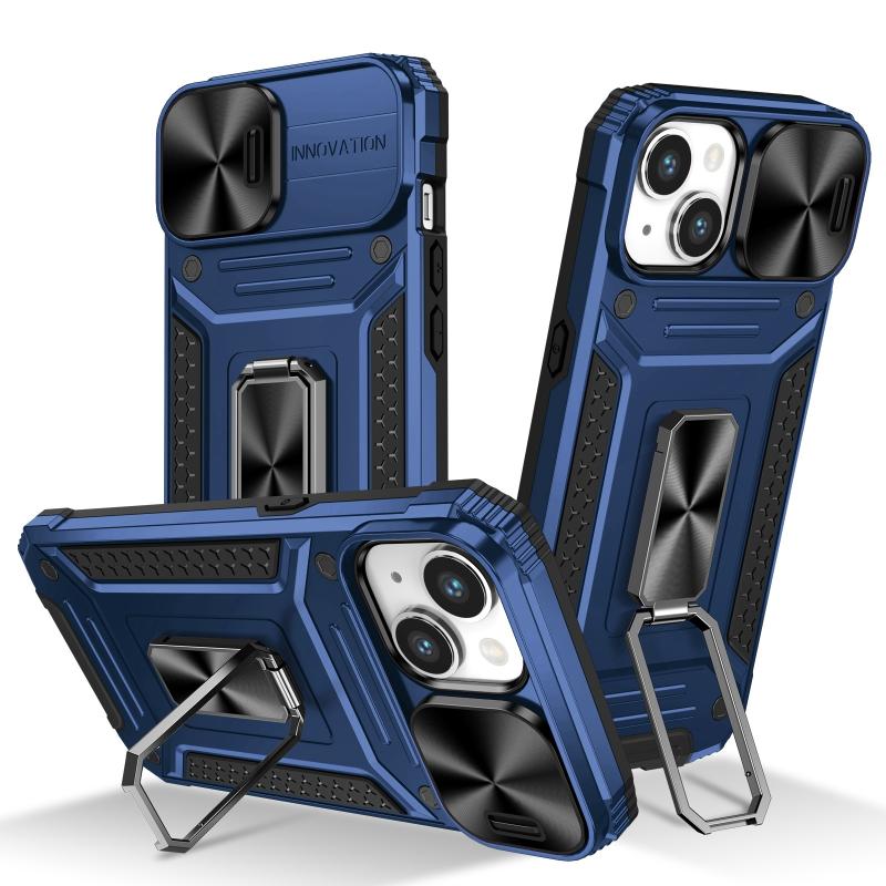 For iPhone 13 Camshield Robot TPU Hybrid PC Phone Case(Blue)