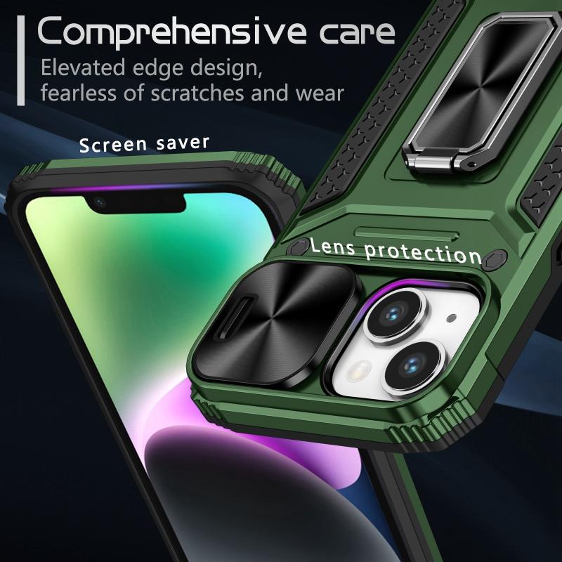 For iPhone 13 Camshield Robot TPU Hybrid PC Phone Case(Green)