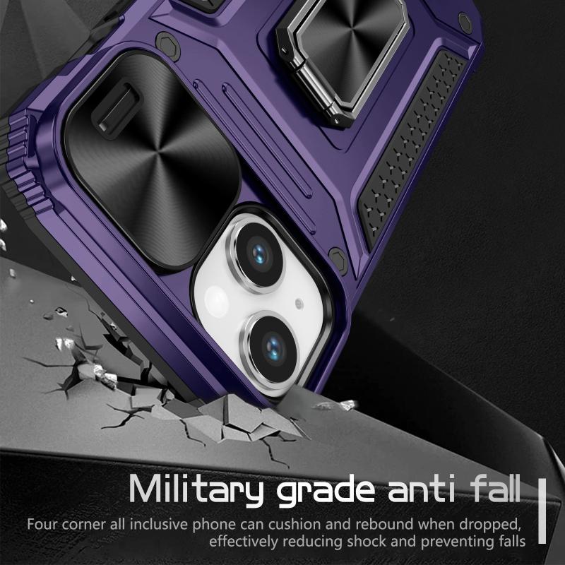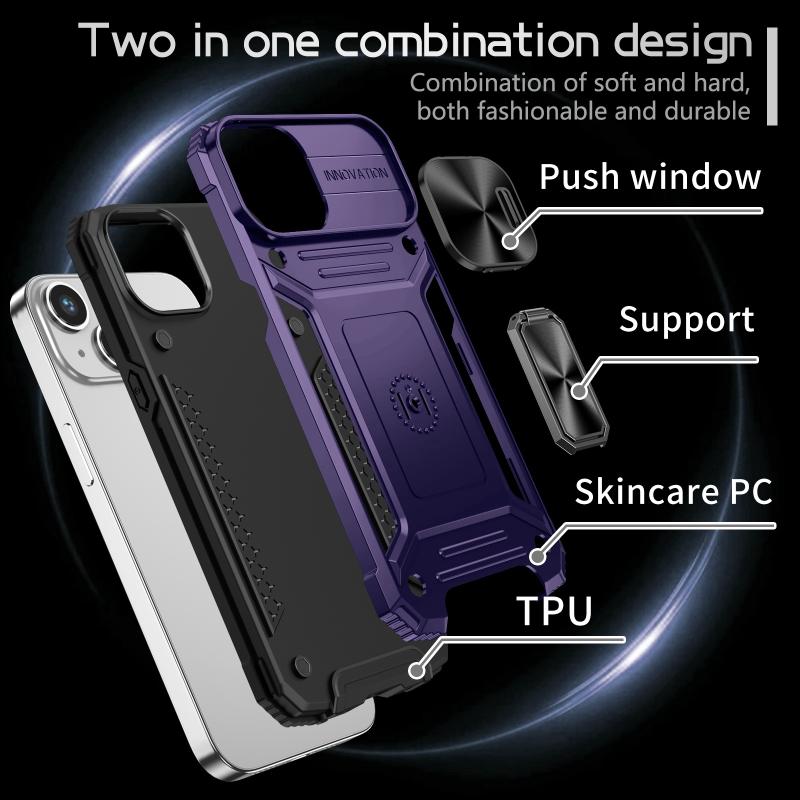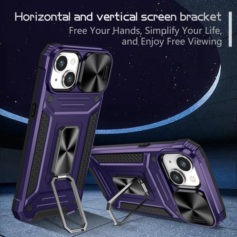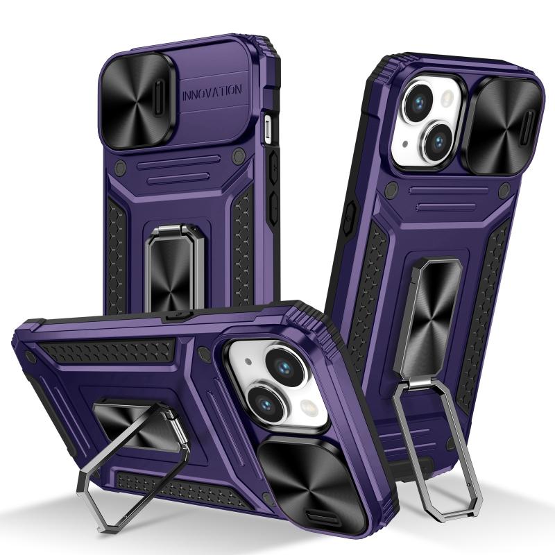 For iPhone 13 Camshield Robot TPU Hybrid PC Phone Case(Purple)