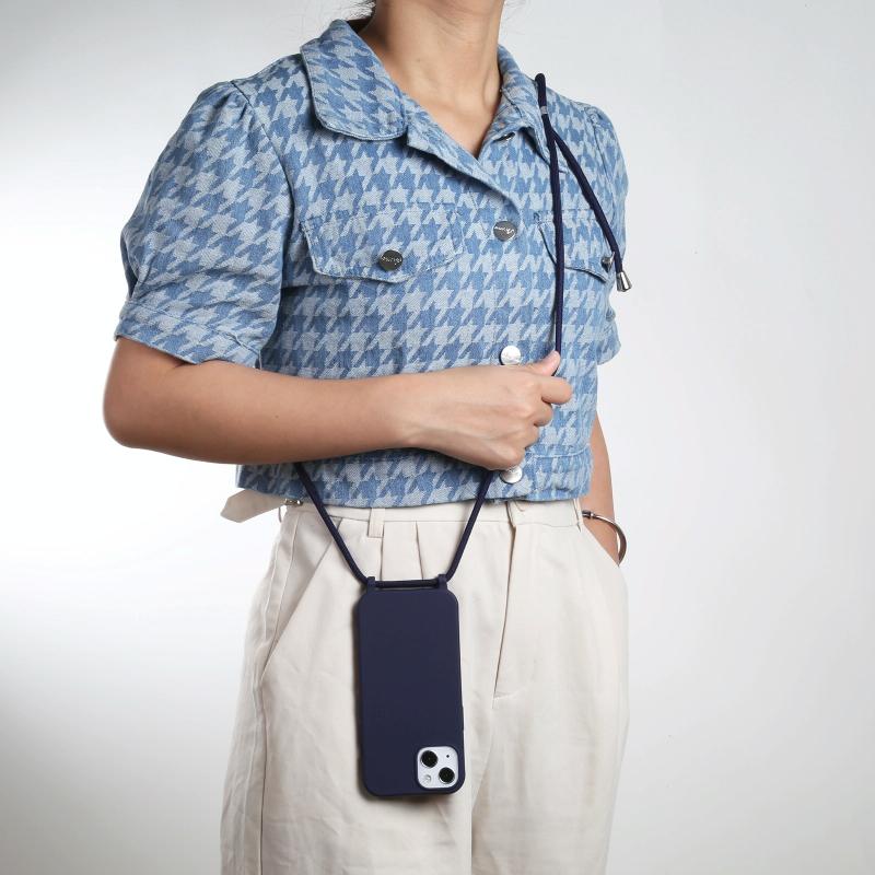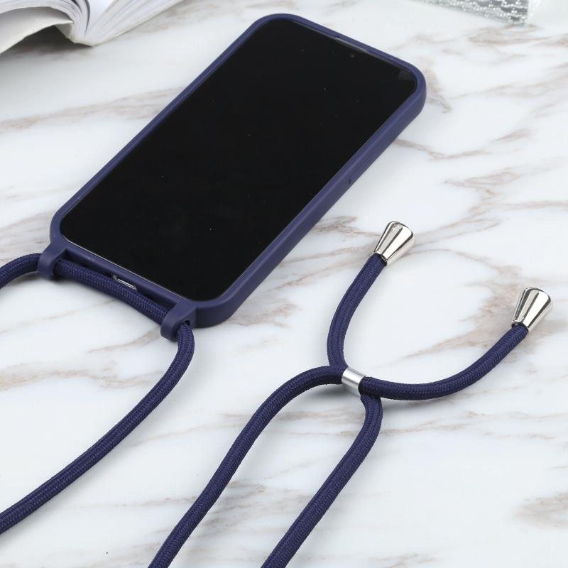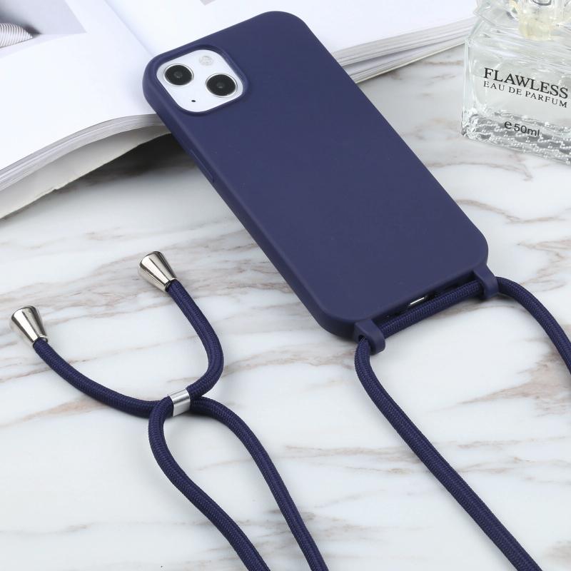For iPhone 13 Candy Colors TPU Protective Case with Lanyard(Dark Blue)