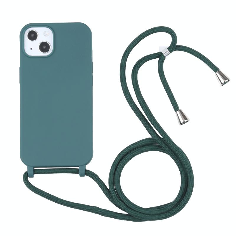 For iPhone 13 Candy Colors TPU Protective Case with Lanyard(Dark Green)