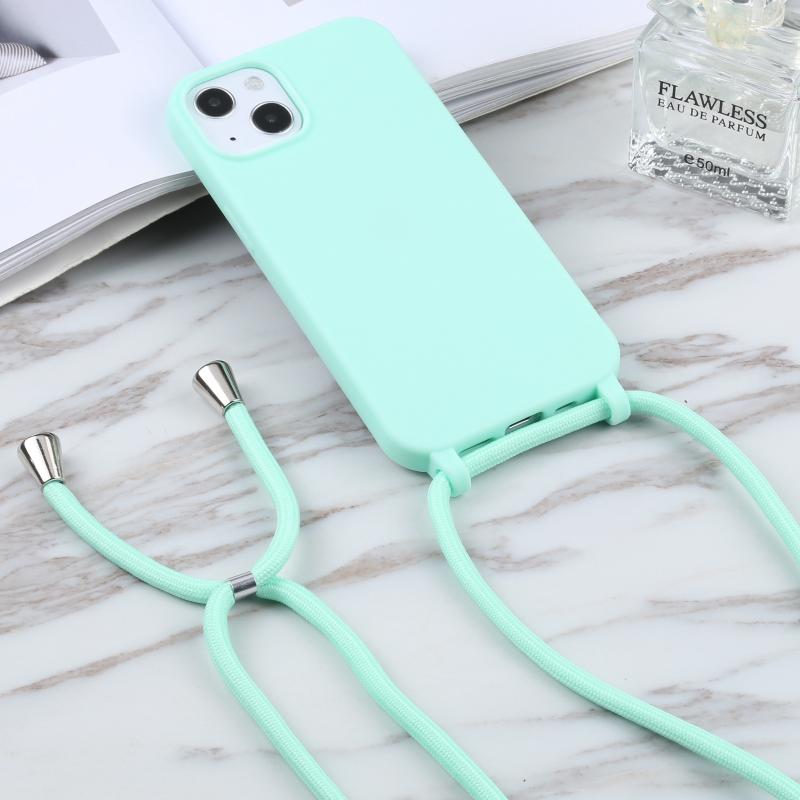 For iPhone 13 Candy Colors TPU Protective Case with Lanyard(Mint Green)