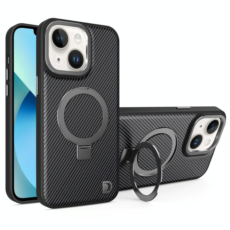 For iPhone 13 Carbon Fiber MagSafe Holder Phone Case(Black)