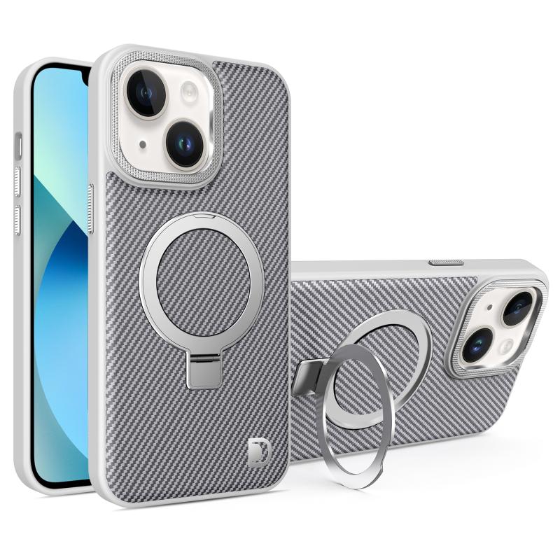 For iPhone 13 Carbon Fiber MagSafe Holder Phone Case(Grey)