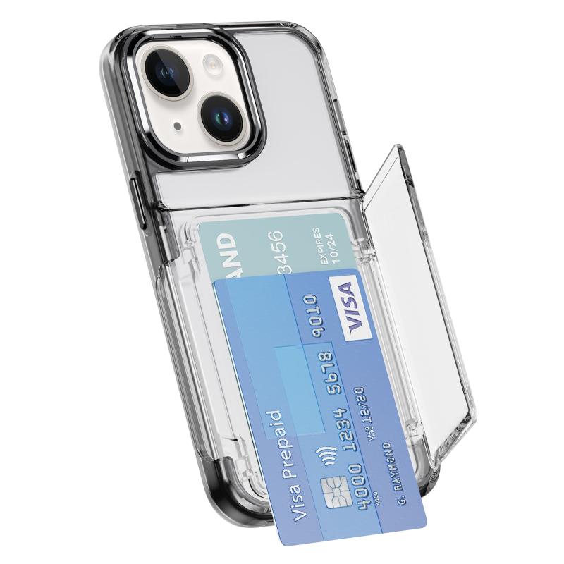 For iPhone 13 Card Holder Acrylic Hybrid TPU Phone Case(Transparent Black)