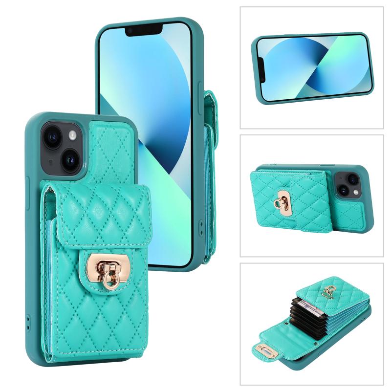 For iPhone 13 Card Slot Leather Phone Case(Mint Green)