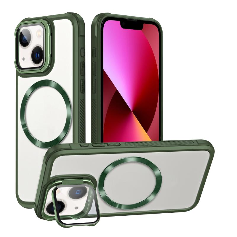 For iPhone 13 CD-grain Magsafe Acrylic Hybrid TPU Phone Case(Green)