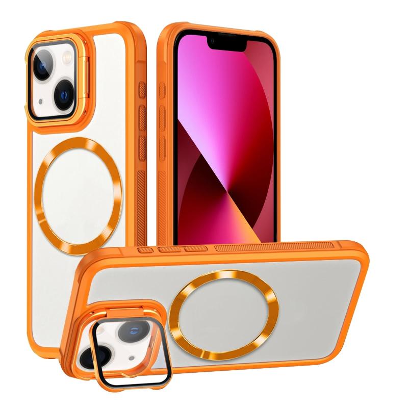 For iPhone 13 CD-grain Magsafe Acrylic Hybrid TPU Phone Case(Orange)
