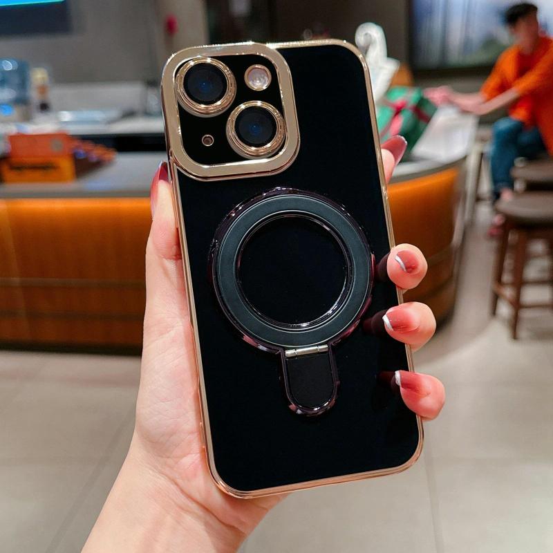 For iPhone 13 Charm Eye Electroplating Metal Holder Phone Case(Black)