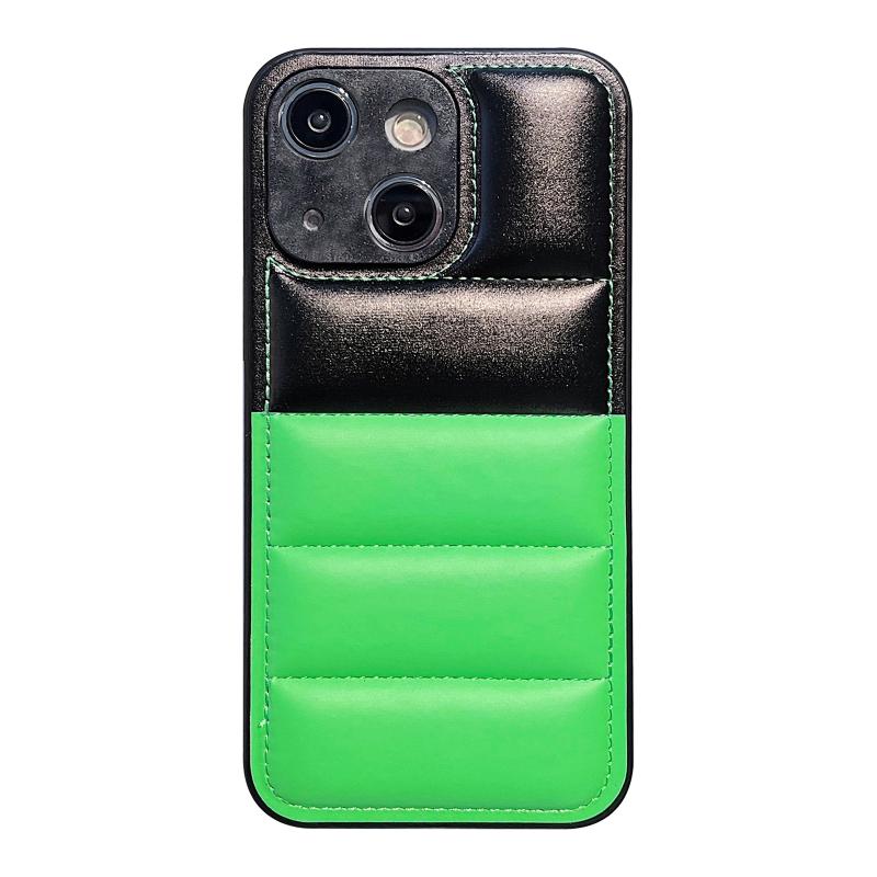 For iPhone 13 Color Block Down Jacket Phone Case(Black Green)
